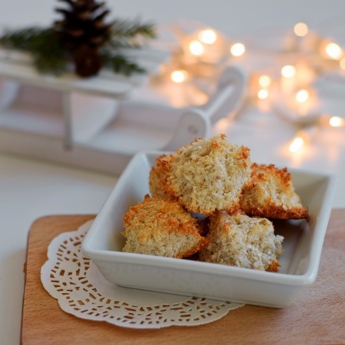 - Lžící děláme na plech kokosky, které pečeme na 150 stupňů asi 15 minut.