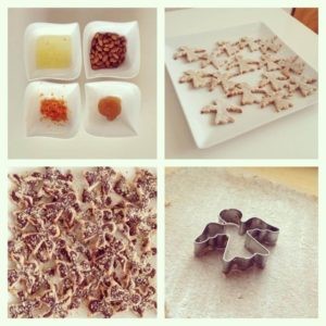 Mandle si pomeleme, smícháme s bílkama, moukou, medem a kůrou. Vypracujeme těsto, pokud se lepí, přidáme ještě mouku. Vyválíme a vykrajujeme andělíčky. Vyšlo mi jich asi 40 kusů. Pečeme na 180 stupňů asi pět minut, podle vaší trouby. Poté můžete ještě dozdobit, já jsem si ještě rozpustila čokoládu se lžící kokosového oleje, andělíčky potřela a posypala pomletýma mandlemi.