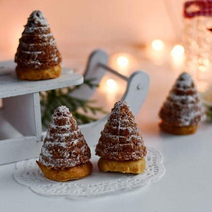 Pomocí formičky tvoříme vosí hnízda tak, aby nám uprostřed vzniklo místo na puding. Aby se nám těsto dobře s formičky vyklápělo, vysypeme si ji sušeným mlékem. Do vyklopeného vosího hnízda dáme vždy puding a přiklopíme piškotem.